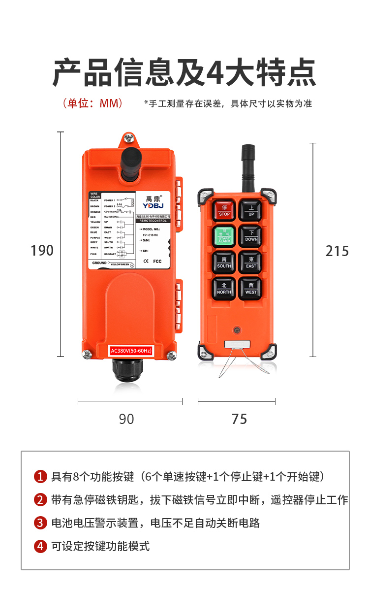 產(chǎn)品廣泛應(yīng)用于機械、建筑、冶金、汽車、化工、鐵路、施工等可實現(xiàn)遙控操作的設(shè)備及場所。