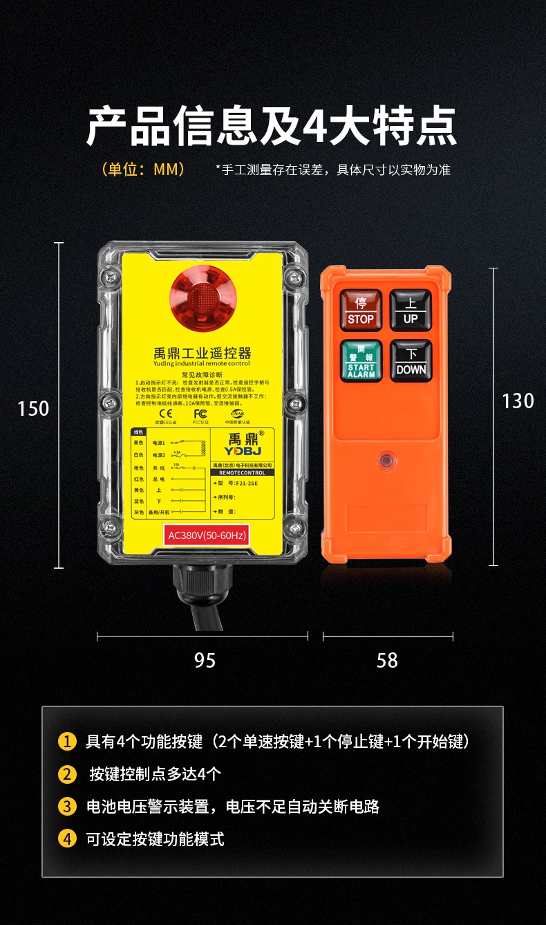 產(chǎn)品廣泛應(yīng)用于機(jī)械、建筑、冶金、汽車、化工、鐵路、施工等可實(shí)現(xiàn)遙控操作的設(shè)備及場所。