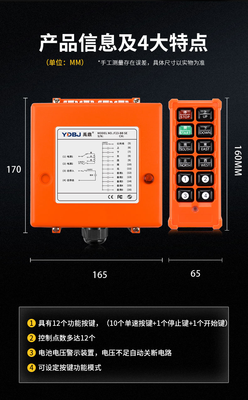產(chǎn)品廣泛應(yīng)用于機(jī)械、建筑、冶金、汽車、化工、鐵路、施工等可實(shí)現(xiàn)遙控操作的設(shè)備及場所。