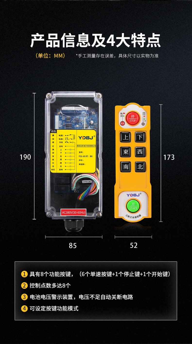 產(chǎn)品廣泛應(yīng)用于機(jī)械、建筑、冶金、汽車、化工、鐵路、施工等可實(shí)現(xiàn)遙控操作的設(shè)備及場所。