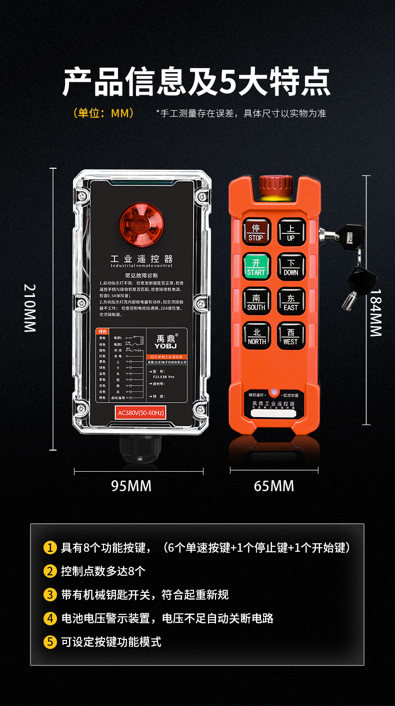 產(chǎn)品廣泛應(yīng)用于機械、建筑、冶金、汽車、化工、鐵路、施工等可實現(xiàn)遙控操作的設(shè)備及場所。